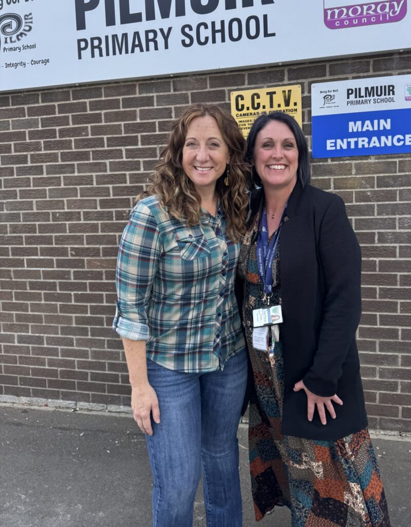 Once caffeinated, Taryn & I gathered up the 85 books she had autographed & stickered the night before and headed over to Pilmuir Primary School for her presentation to 3-schools-worth of P7s (5th graders). Iโll let her share the details of that gathering, but from where I sat in the back, I can say that I was incredibly proud of my friend. She had those kids (and the teachers) absolutely hanging off of every word for a solid hour. This woman knows how to tell a story!