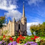 As our tour moved on to what might be considered more typical tourist sites, the weather also took a turn. After three or four rainy, cold days, the weather cleared up enough for us to really enjoy visiting sites like Stirling Castle, considered to be the largest castle in Scotland, and Dunfermline Abbey, the final resting place of the body of Robert the Bruce, King of Scots. We found ancestors interred at the Necropolis in Glasgow, got to pet the Highland coos (that’s Scottish for “cow” but much cuter!), and enjoyed shopping the Royal Mile in Edinburgh. We shared many shots of whisky, and while we DID try the haggis, we both agreed that there was probably not enough whisky to make us enjoy it!